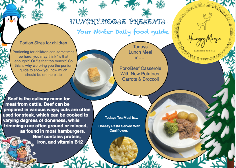 Tender Pork Chunks In A Rich Gravy Served With New Potatoes, Baton Carrots & Peas